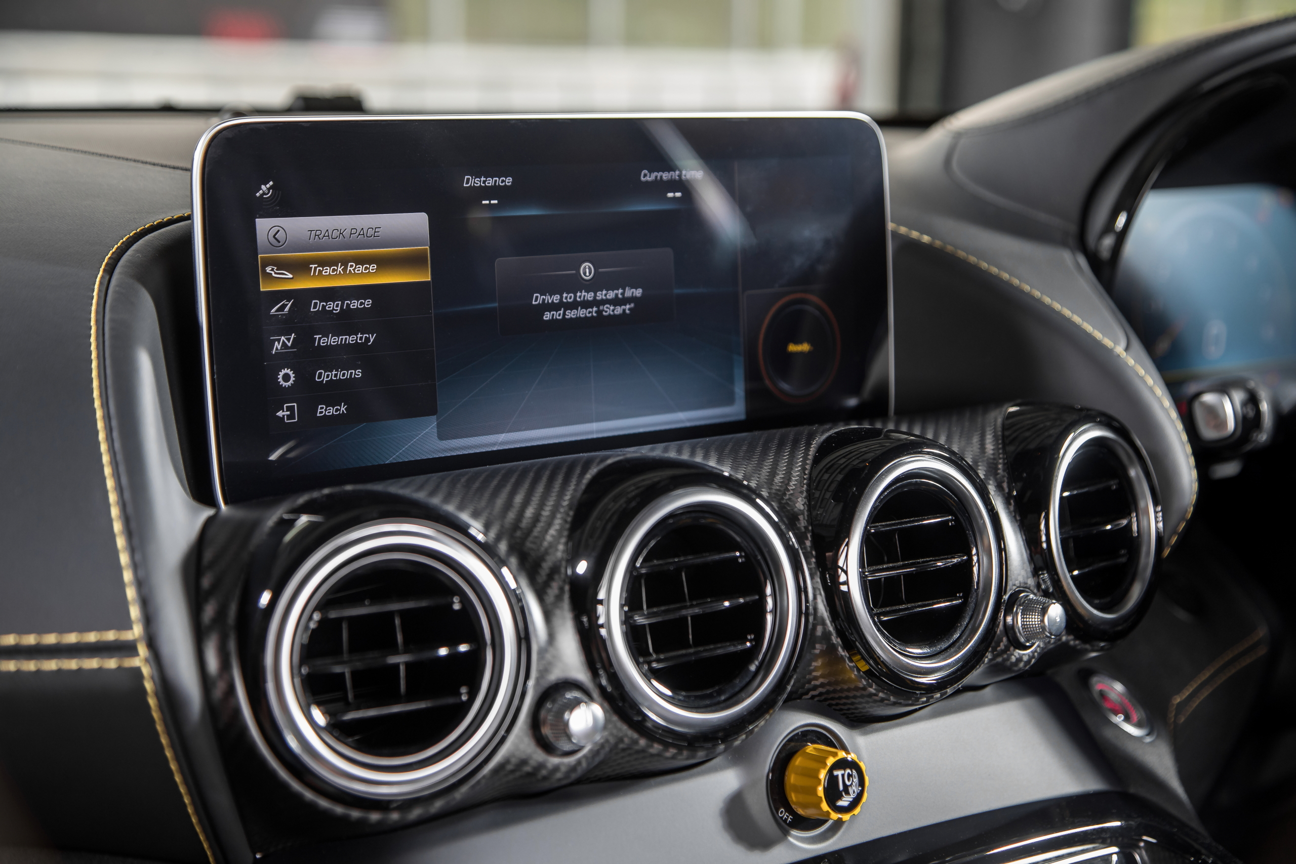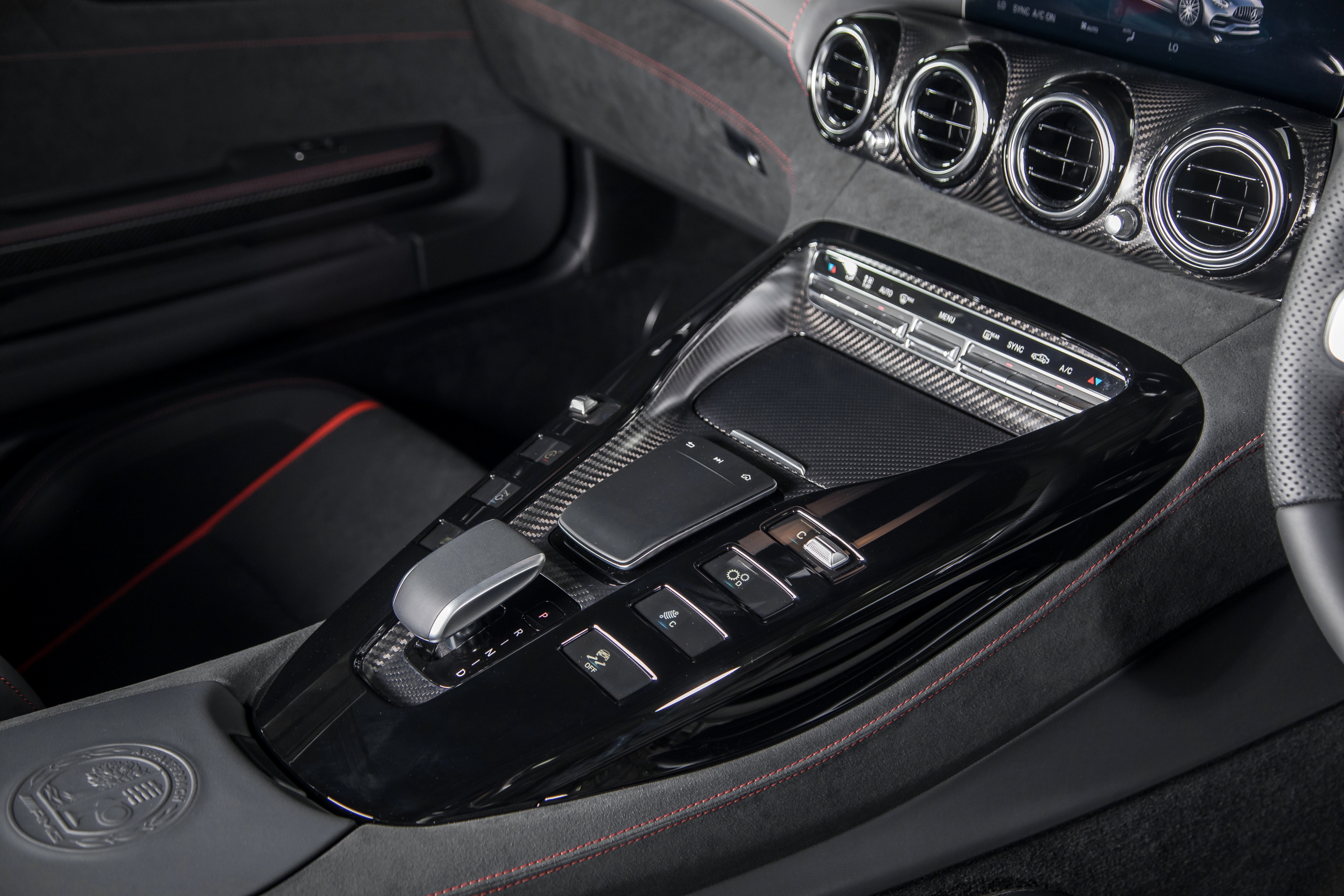 轮圈尺寸依然为前19、后20寸的设定,但是 GT C 以及 GT R 所搭配的轮辋设计则略有不同。进入车厢,小改款后的AMG GT 车系的内装整体造型上依然与现款车型如出一辙,不过其中央鞍部上两侧的圆形按钮都更改为了方形按键,当启动电流后即可看到图案显示。