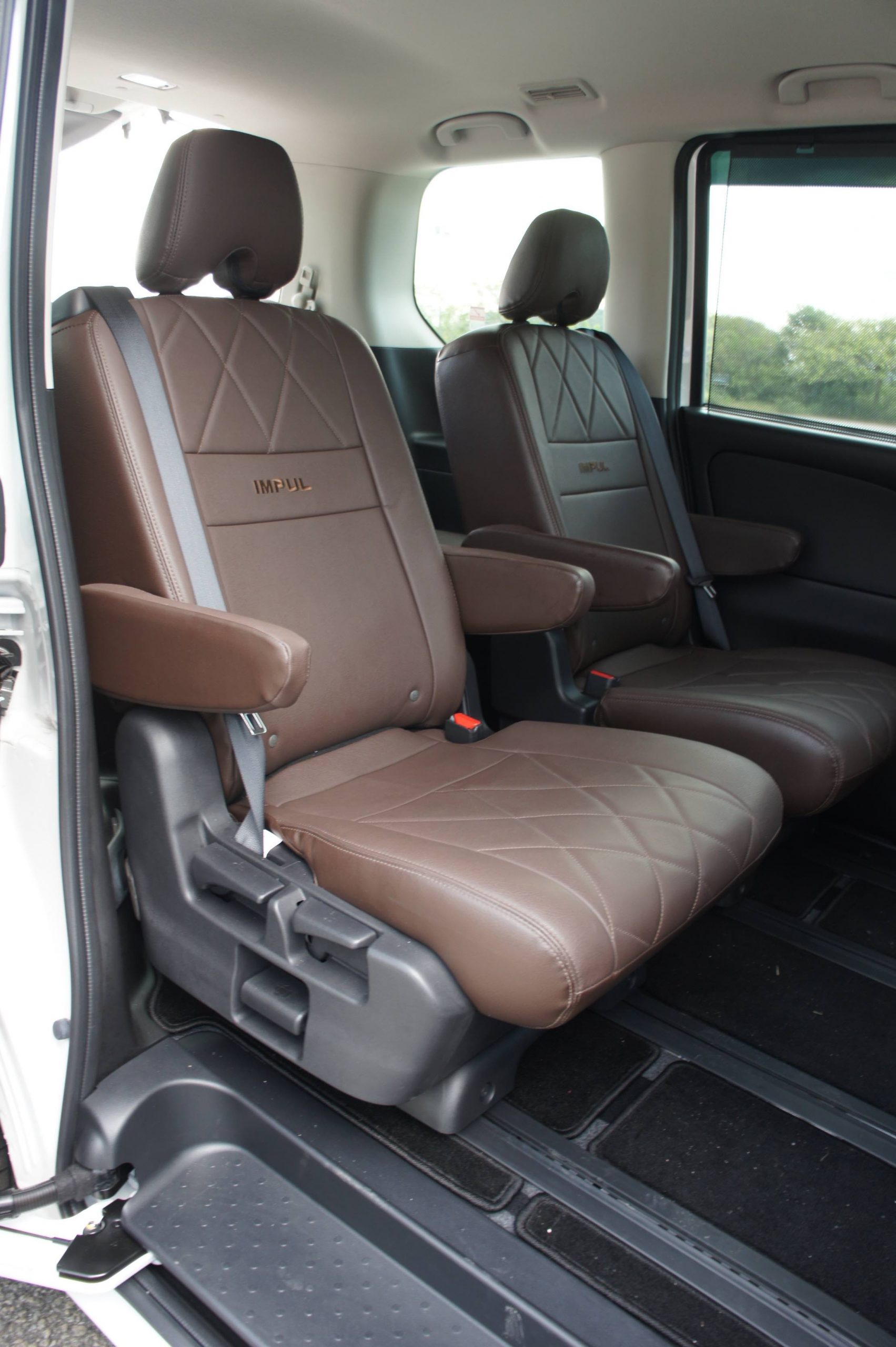 进入车厢,首先尽入眼帘的先是全套摩卡色钻石绗缝豪华皮革座椅,细致的造工以及缝上「IMPUL」字眼,进一步体现了日本豪华的风采。