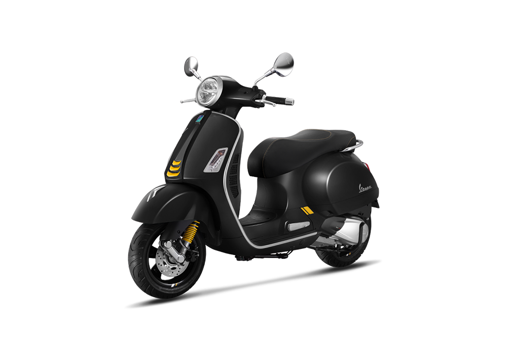 前后减震器是 Vespa 一贯的单摇臂形式,为凸显 Vespa GTS Super Tech 300,前减震器的弹簧选用了黄色配搭,与车头格栅、车身以及轮辋的黄色贴纸相衬。除此之外,和此前的 GTS 相比,Vespa GTS Super Tech 300 在引擎边盖的造型上有所变化,车座形状也有所不同。