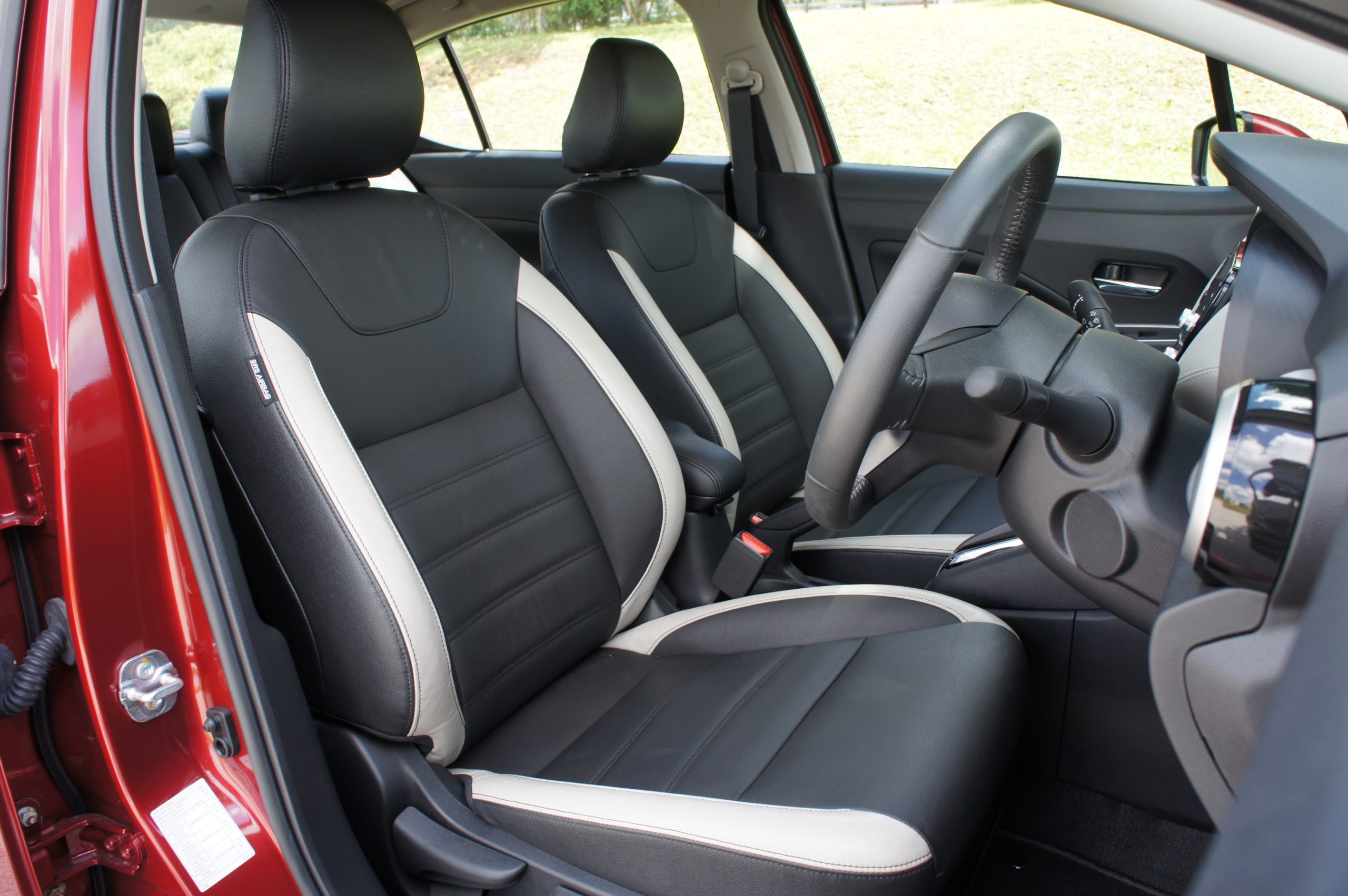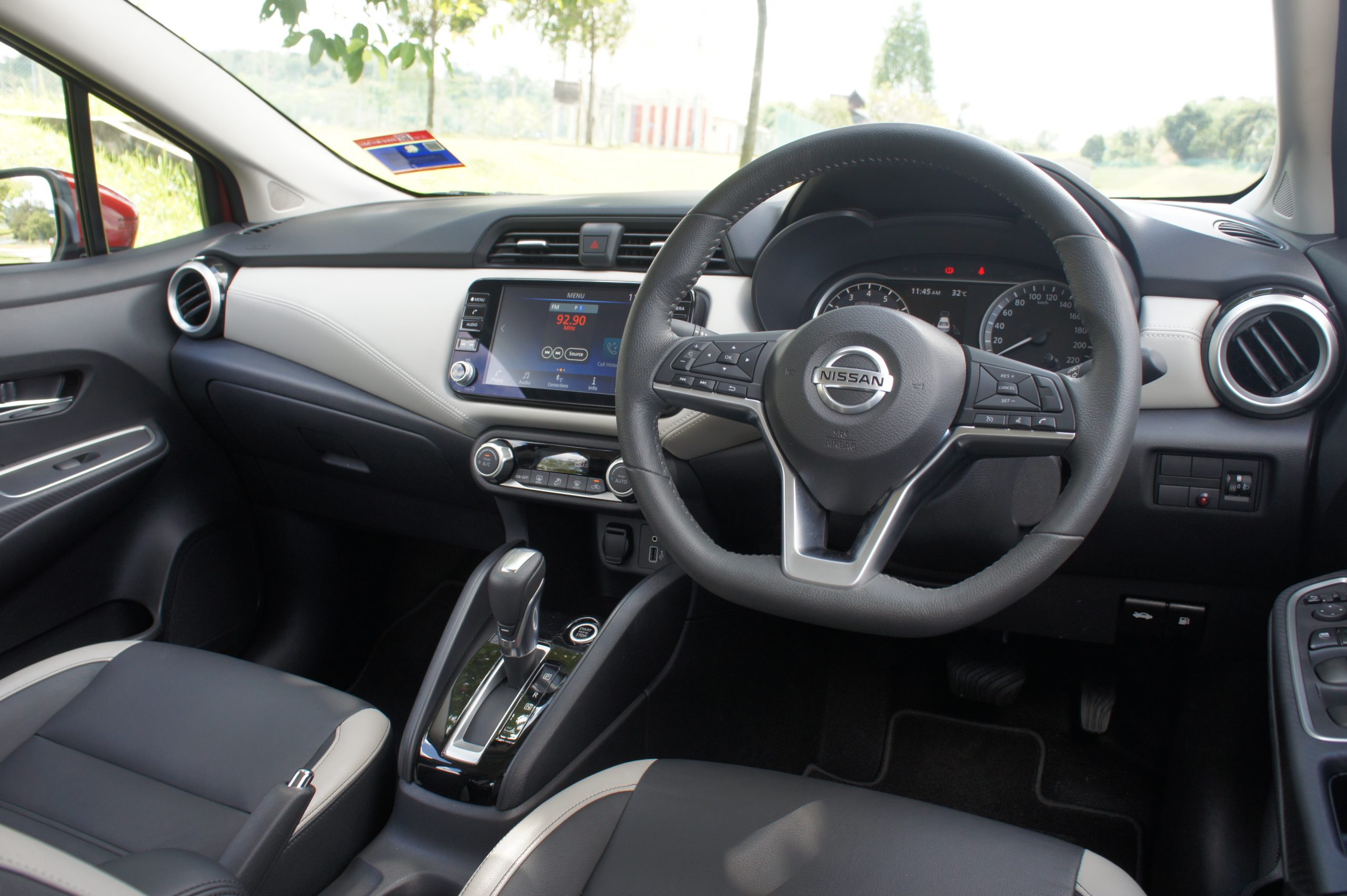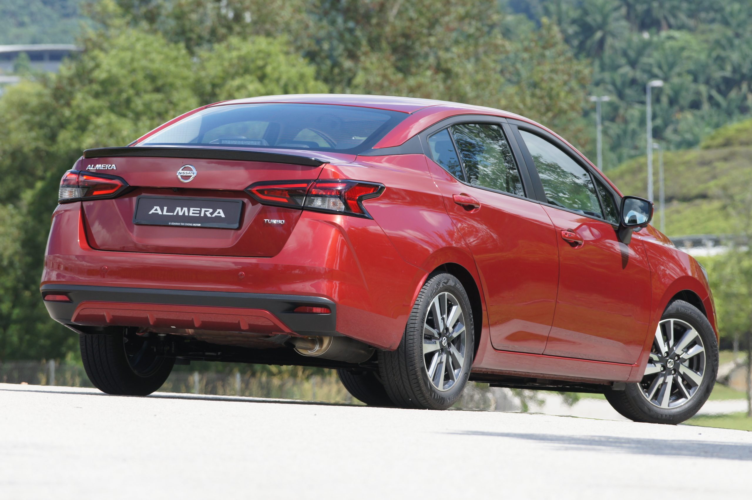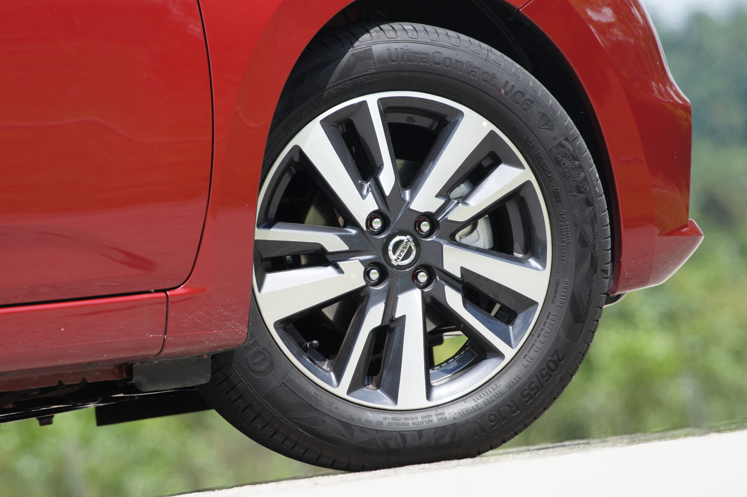 试驾的 VLT 版为 Almera 最高配置型号,轮辋采用了 16 合金铝圈配 205/55 R16 的 Continental UC6 轮胎。这样的配置对于目前 B-Segment 车款来说可是相当宽大的尺码,因为同级对手一般仍采用 185/55 R16 的配置,以兼顾操控和油耗为基准。但是针对这一点,ETCM 也说明了日本公司也给了建议新车可以搭载这个轮胎尺寸,并保有经济油耗特性以及出色的操控感。