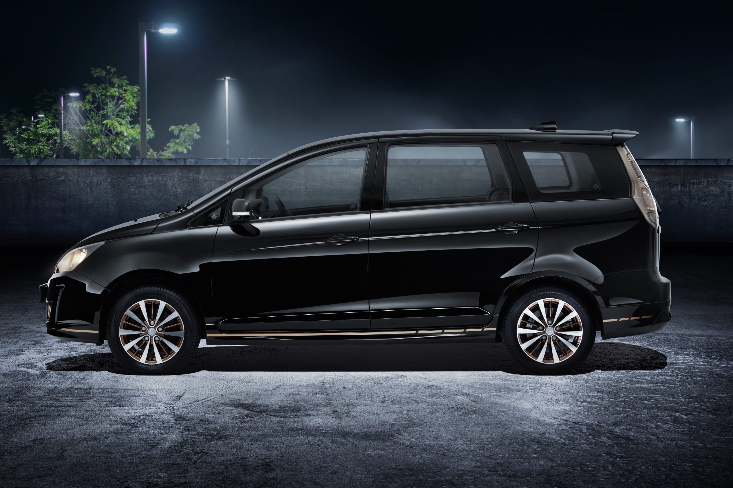 车如其名,这两个车款采用黑色主调,配以金色装饰的防撞杆和合金轮辋。汽车内部采用黑色皮革座椅、 门饰和地板操控座;此外 Persona 使用了黑色的顶衬,而 Exora 加上了高架显示屏。