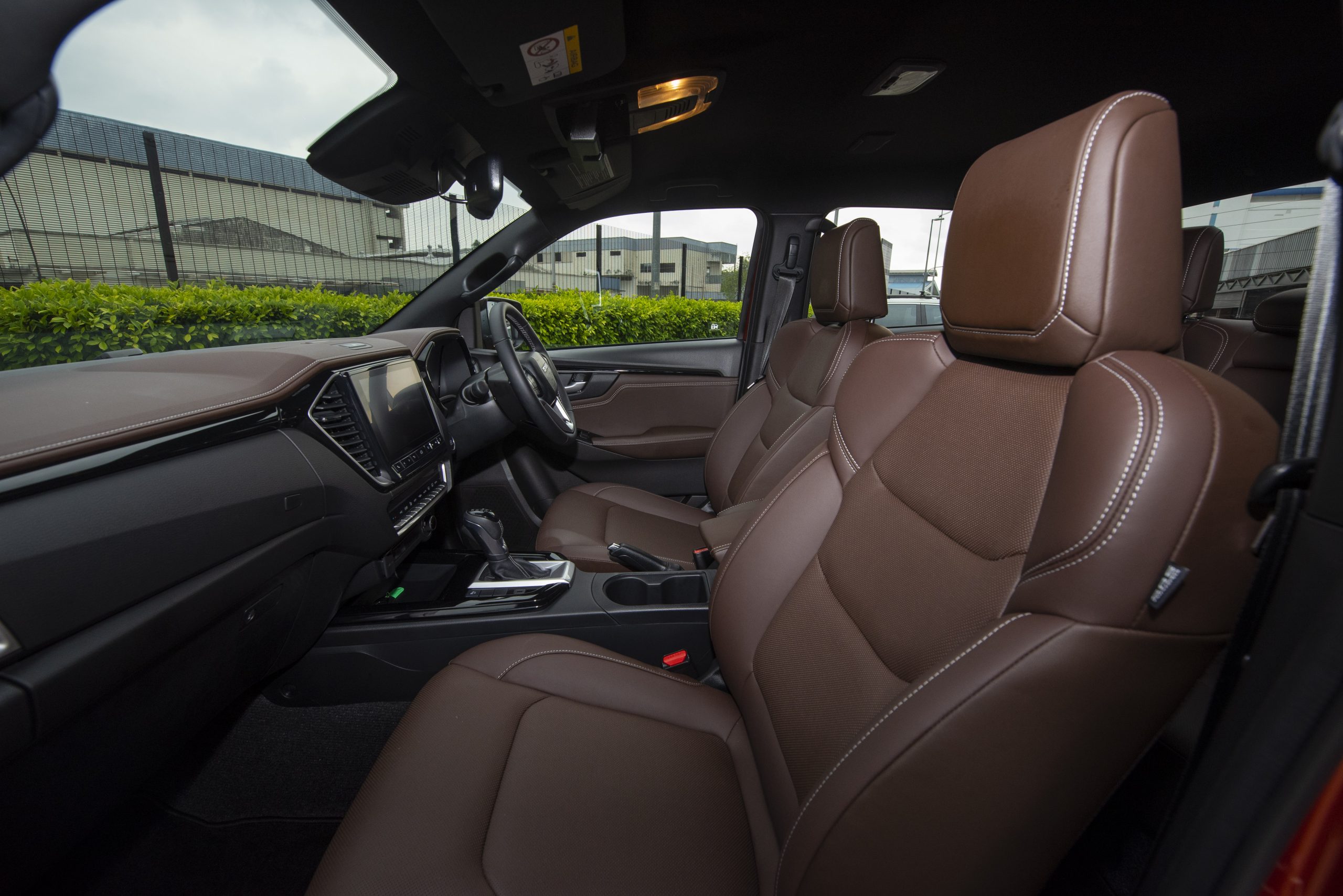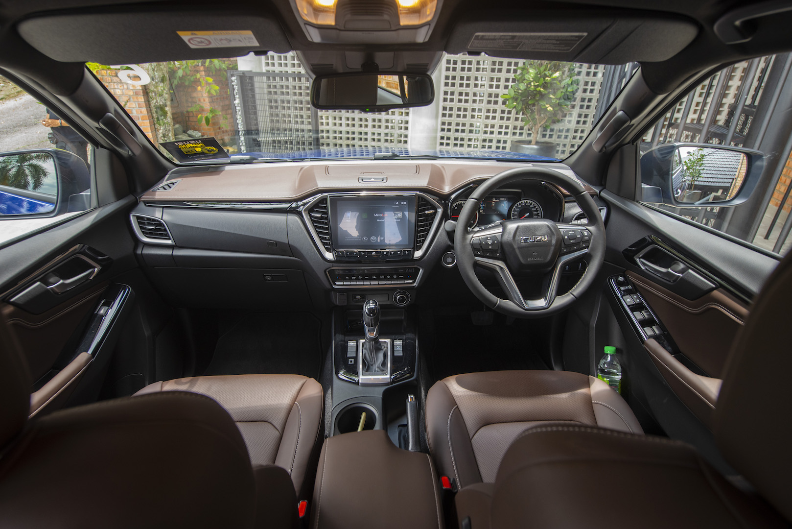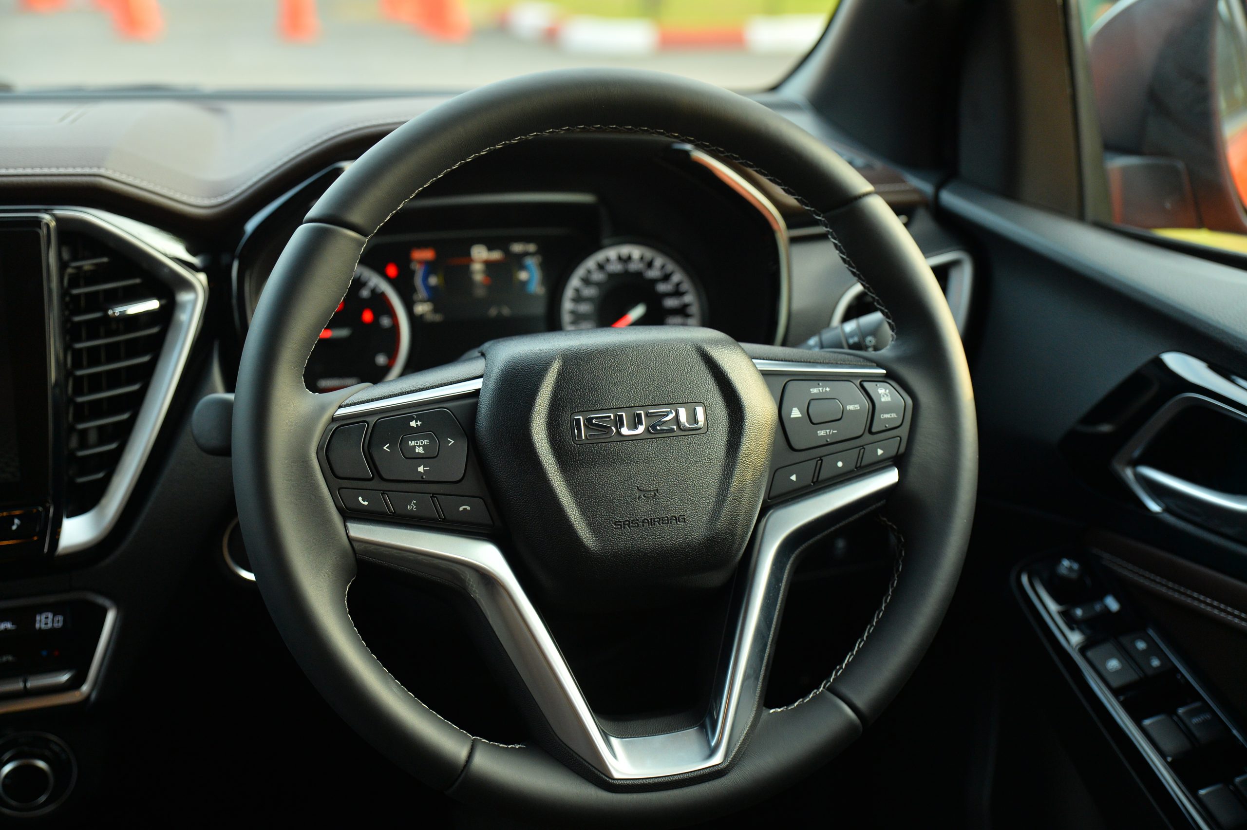 安全配备部份是这次最大的卖点,旗舰的 3.0L X-Terrain 还搭载了 7 具气囊(第 7 具为驾驶座膝部气囊),但因为本地市场的全新 D-Max 还是采用液压辅助的动力方向盘,因此它少了澳洲市场看到的车道维持辅助(LKAS)和车道居中辅助(LCA),所以在本地无法达到第二级自动驾驶辅助的定义。X-Terrain 车型拥有 Valencia Orange 以及 Sapphire Blue 两种非常年轻时尚的颜色,另外也具备了非常多独特的功能,包括了远程引擎启动,限滑差速器,无骨式雨刷,带 向电动调整的棕色真皮座椅(包含腰部支撑),以及先进驾驶辅助系统 ADAS,这套系统里拥有前方碰撞预警,主动紧急刹车,自适应定速巡航(包含Stop & Go功能),弯道辅助,踏板误踩缓解系统,自动远近光灯,盲点侦测系统,倒车盲点警示,多次碰撞制动系统以及7气囊,可以说是最好的安全配备了。