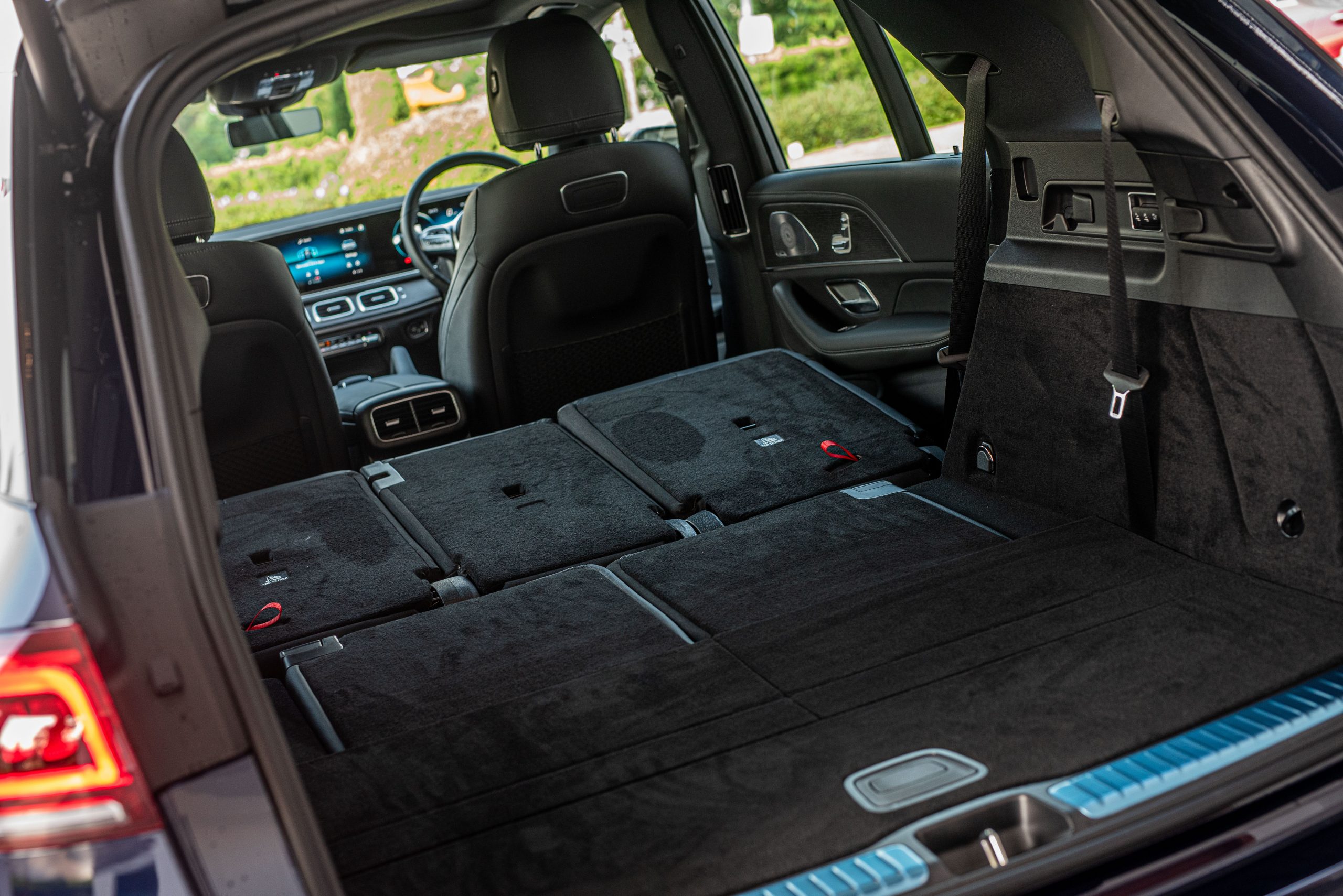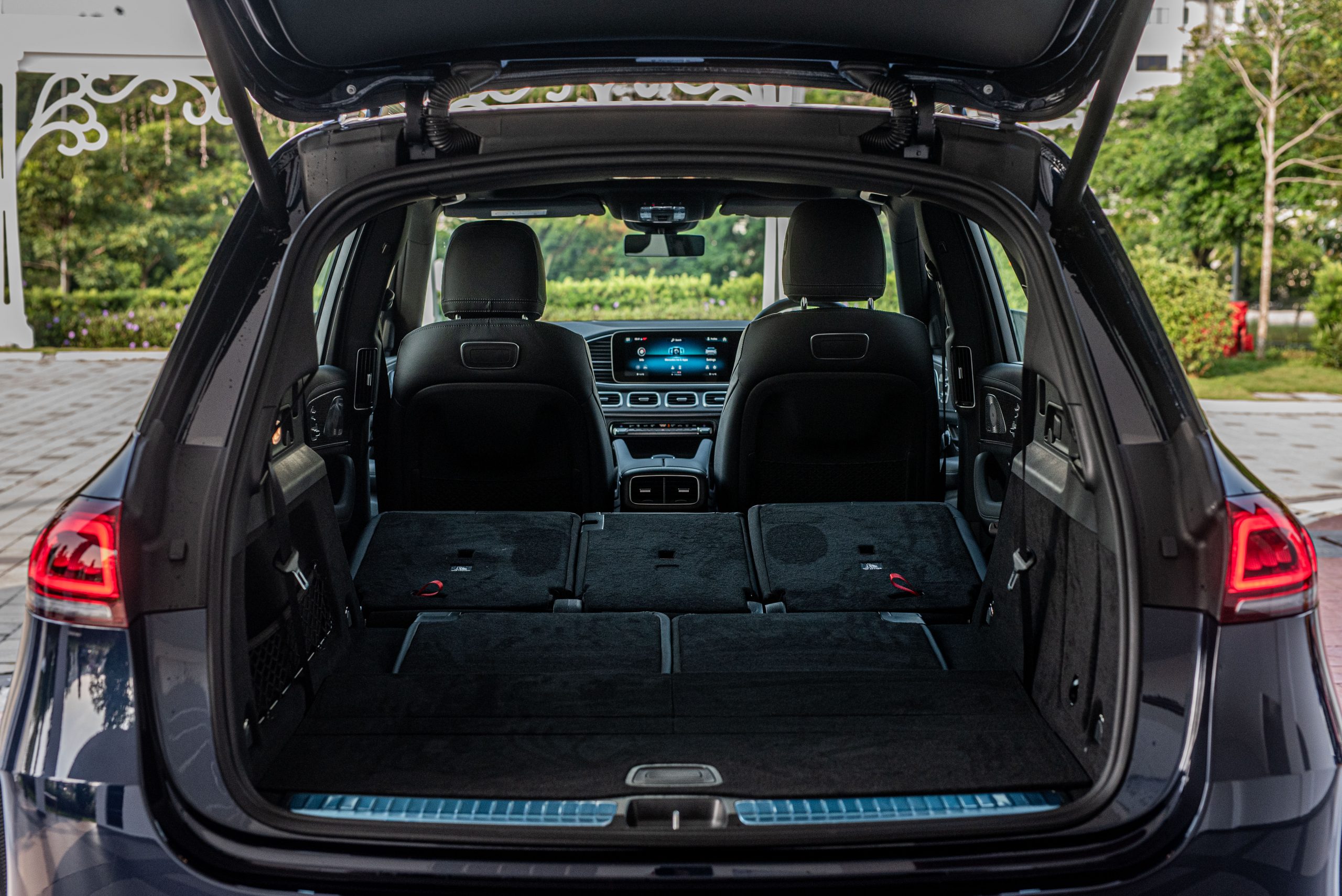 Mercedes-Benz GLE 450 AMG Line 采用了最新的 MHA 模组化平台,它的整体车身尺寸比上一代的 GLE 更加宽敞,轴距来到了 2,995mm,比上一代拉长了 80mm,同时 GLE 也首次出现了 5+2 的七人座设计,行李箱空间容量甚至可以在全部座椅躺平的情况下进一步延伸到 2,055 公升,满足了用家大量的承载容量。