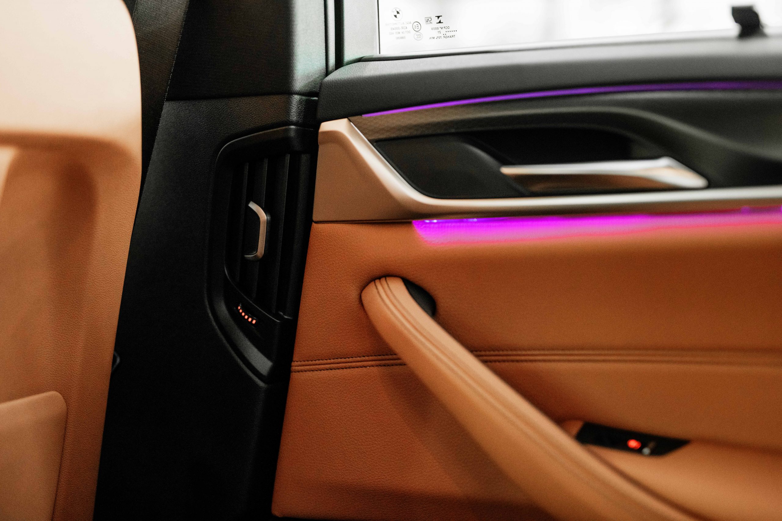 车内,新 BMW 530e M Sport 及 BMW 530i M Sport 提升了非常舒适且又雅致美观的内装设计语意。这两款新改版车配备了独家版 M 款皮革方向盘以及驾驶与乘客时尚跑车座椅,从而创造出 BMW M Sport 改版车耳熟能详的刺激感。这两款改版车搭配了 Aluminium Rhombicle 内装饰边丶Dakota 真皮包覆以及 BMW 个性化亮黑顶蓬(BMW Individual anthracite headliner)。负责车内照明的是环舱气氛灯,新 BMW 530i M Sport 车主则能享受到电动天窗功能。