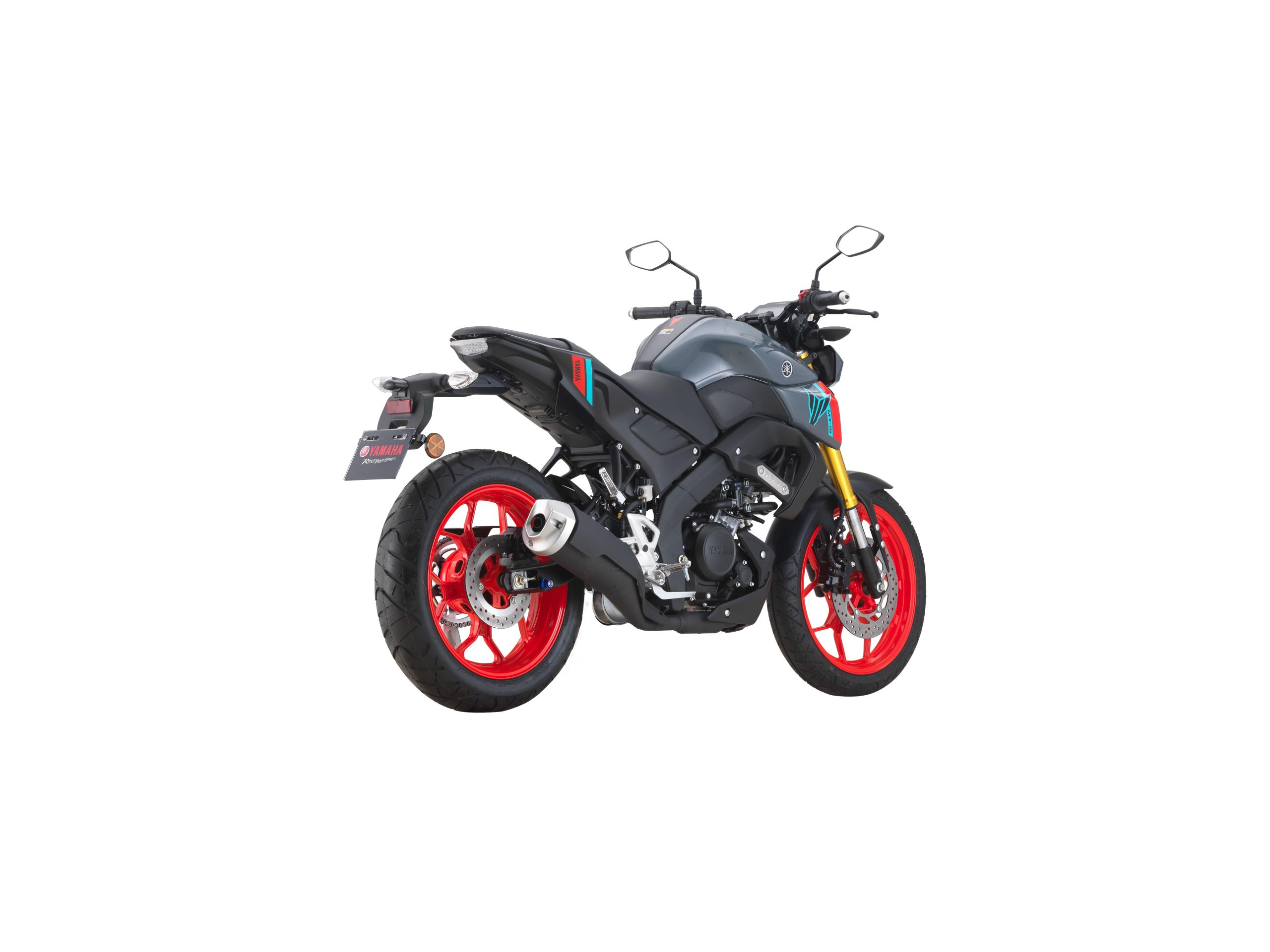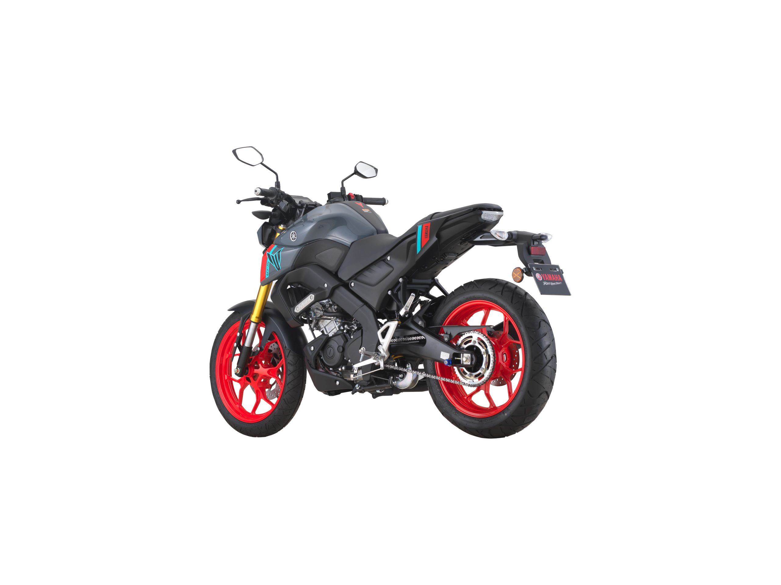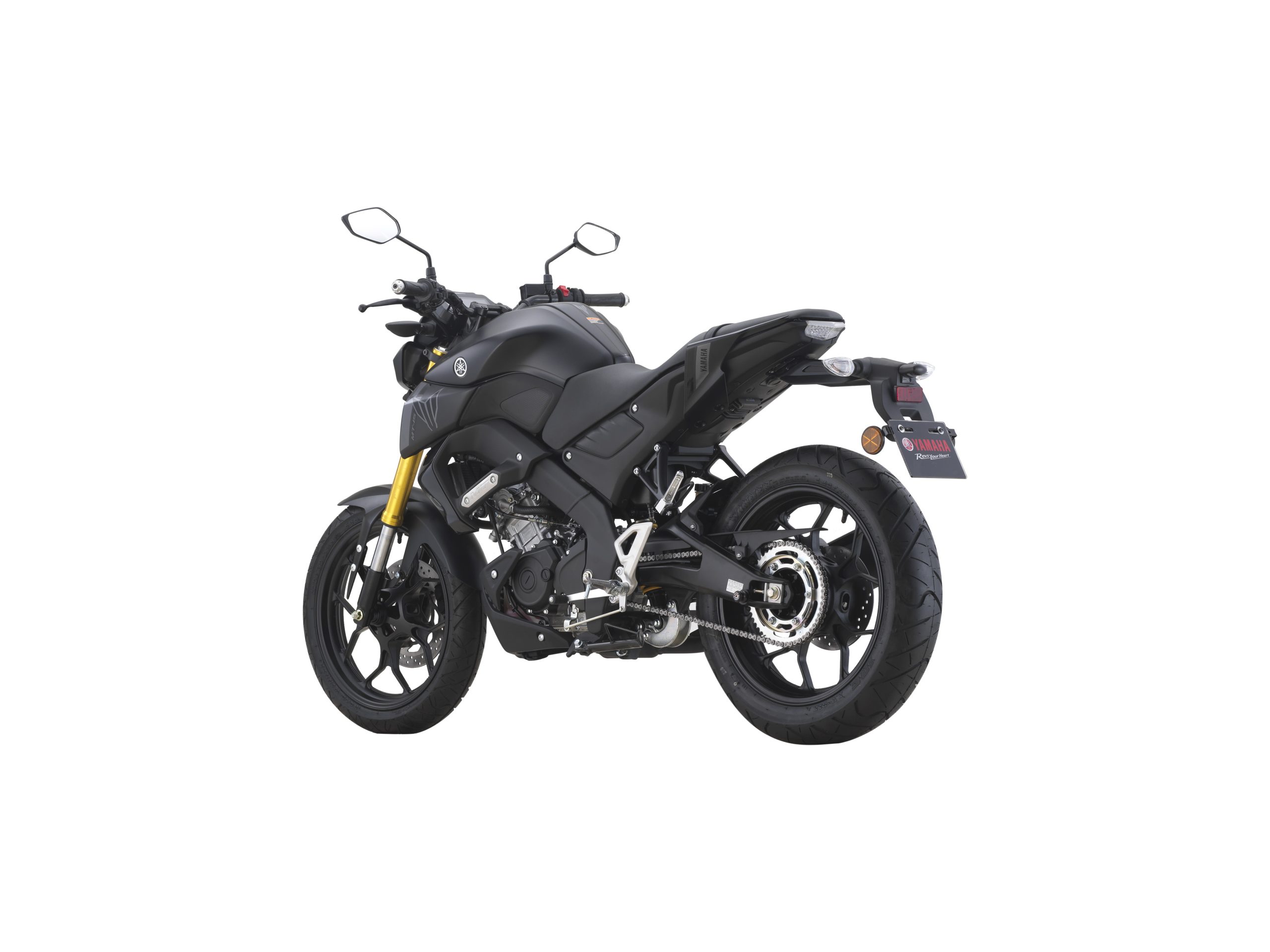 在前面,带有金色彩绘的倒置前叉避震支撑着 MT-15 的前端,后部有一个预载可调的单筒减震器。前后轮上的单个液压盘负责制动,而轮胎尺寸为前轮 110/70 和后轮 140/70 配置。