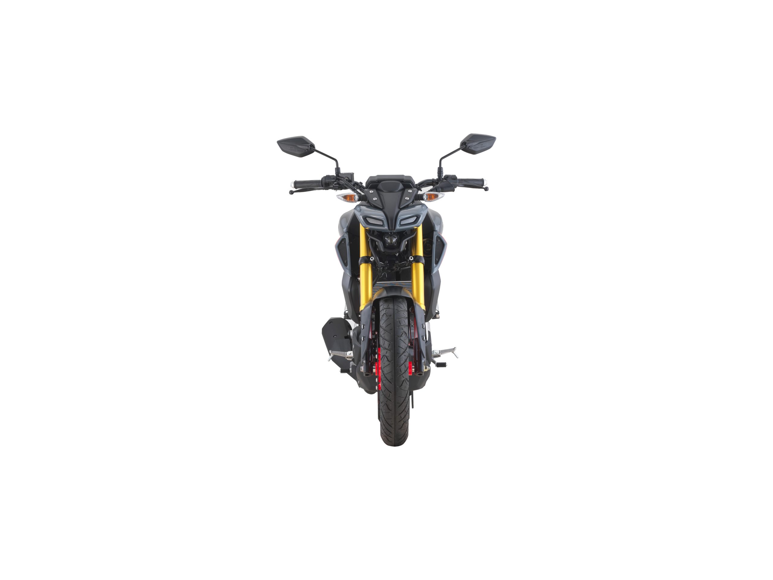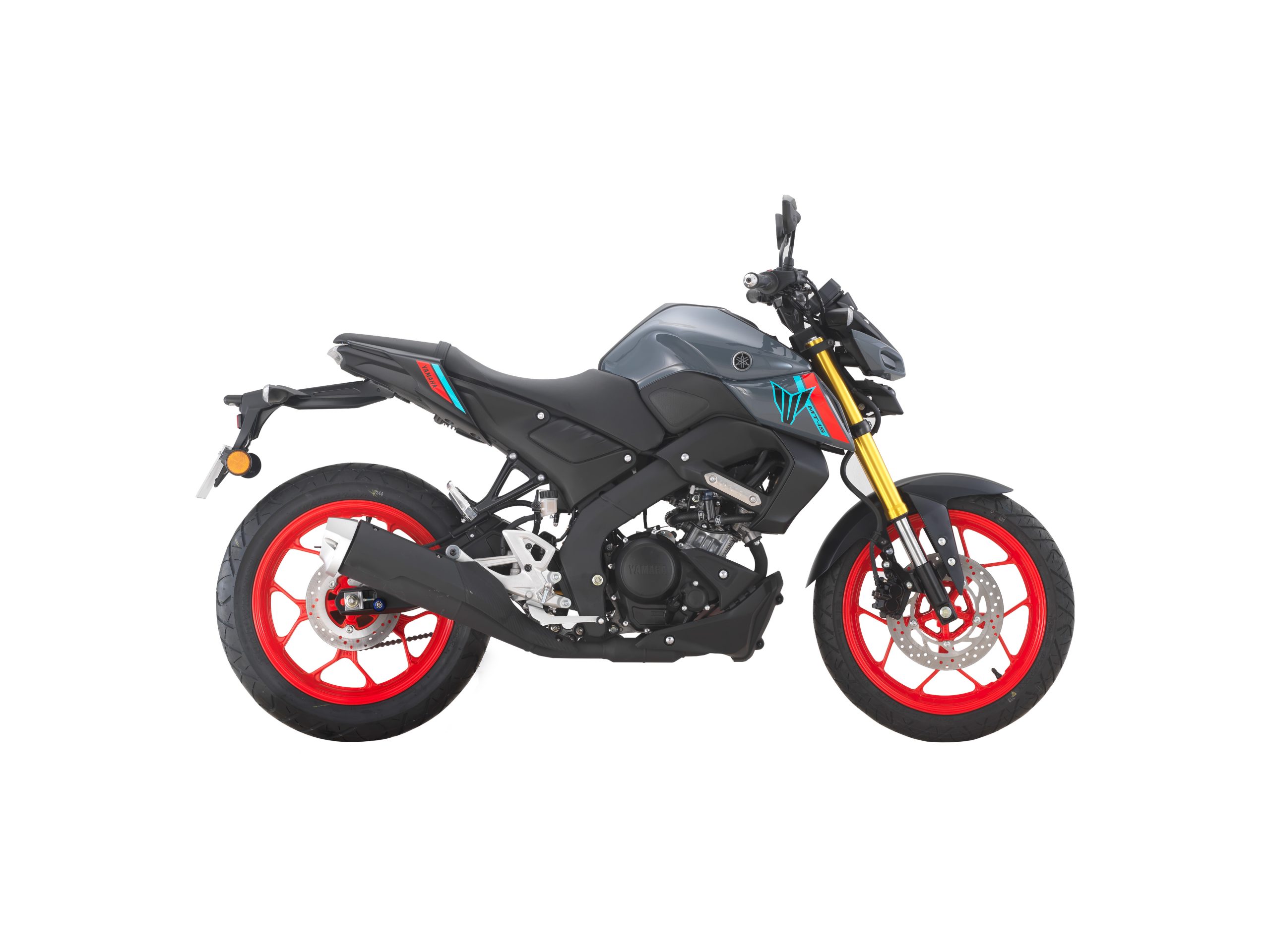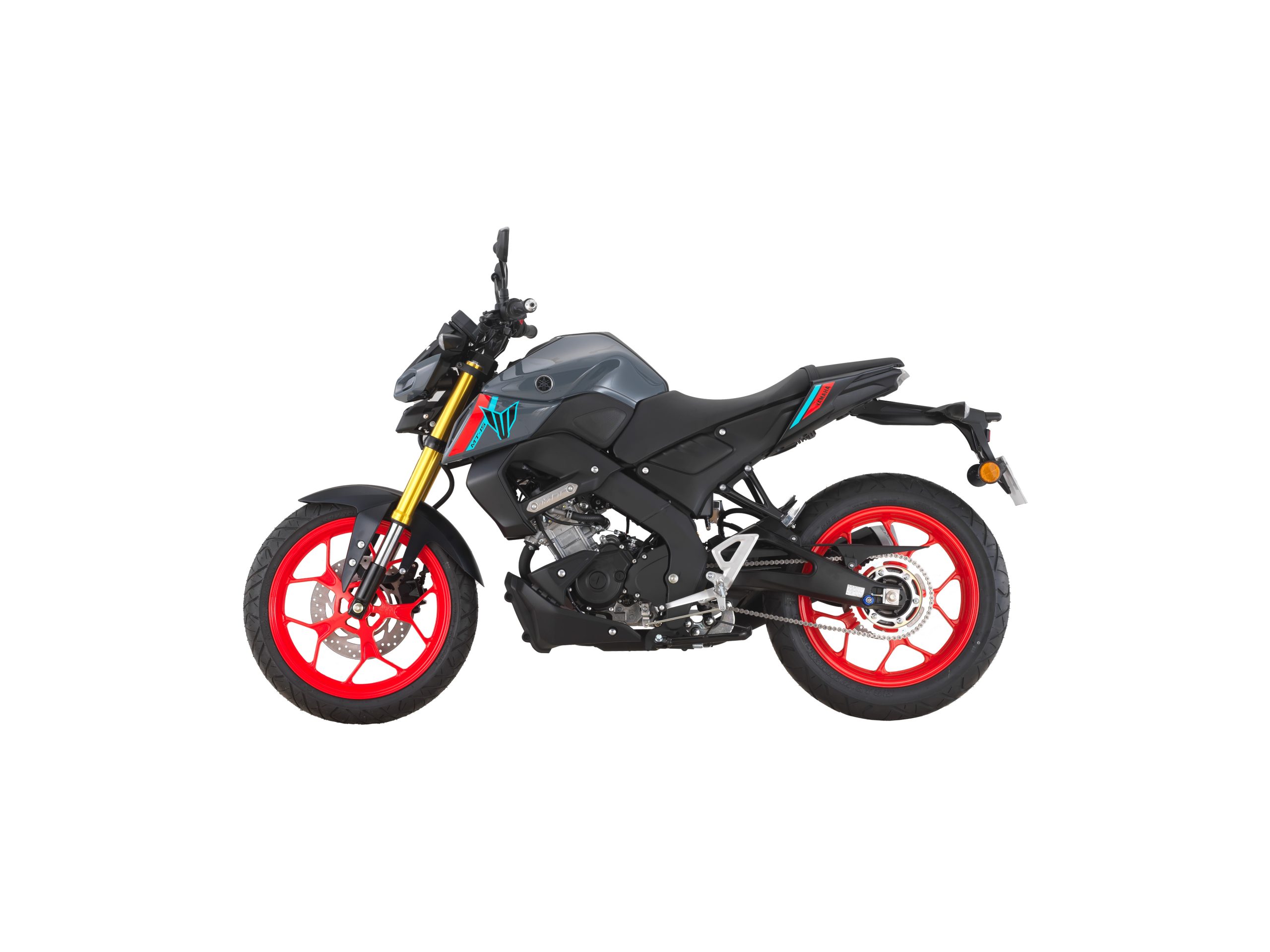 在前面,带有金色彩绘的倒置前叉避震支撑着 MT-15 的前端,后部有一个预载可调的单筒减震器。前后轮上的单个液压盘负责制动,而轮胎尺寸为前轮 110/70 和后轮 140/70 配置。