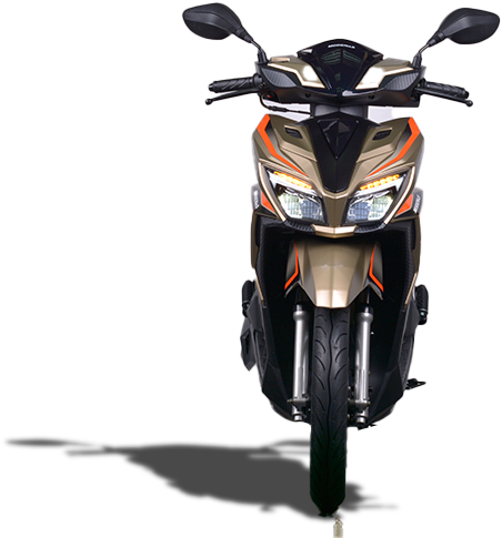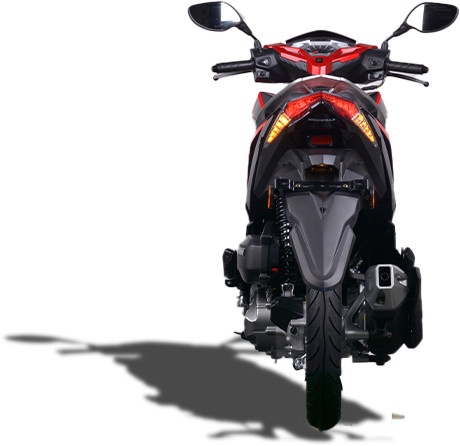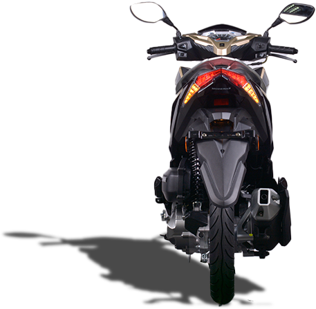 作为一款 Scooter 型号,变速箱为常见的皮带式 CVT 无段速,轮胎配置为 14 寸轮辋搭前 80/90 后 90/90 的轮胎尺码。