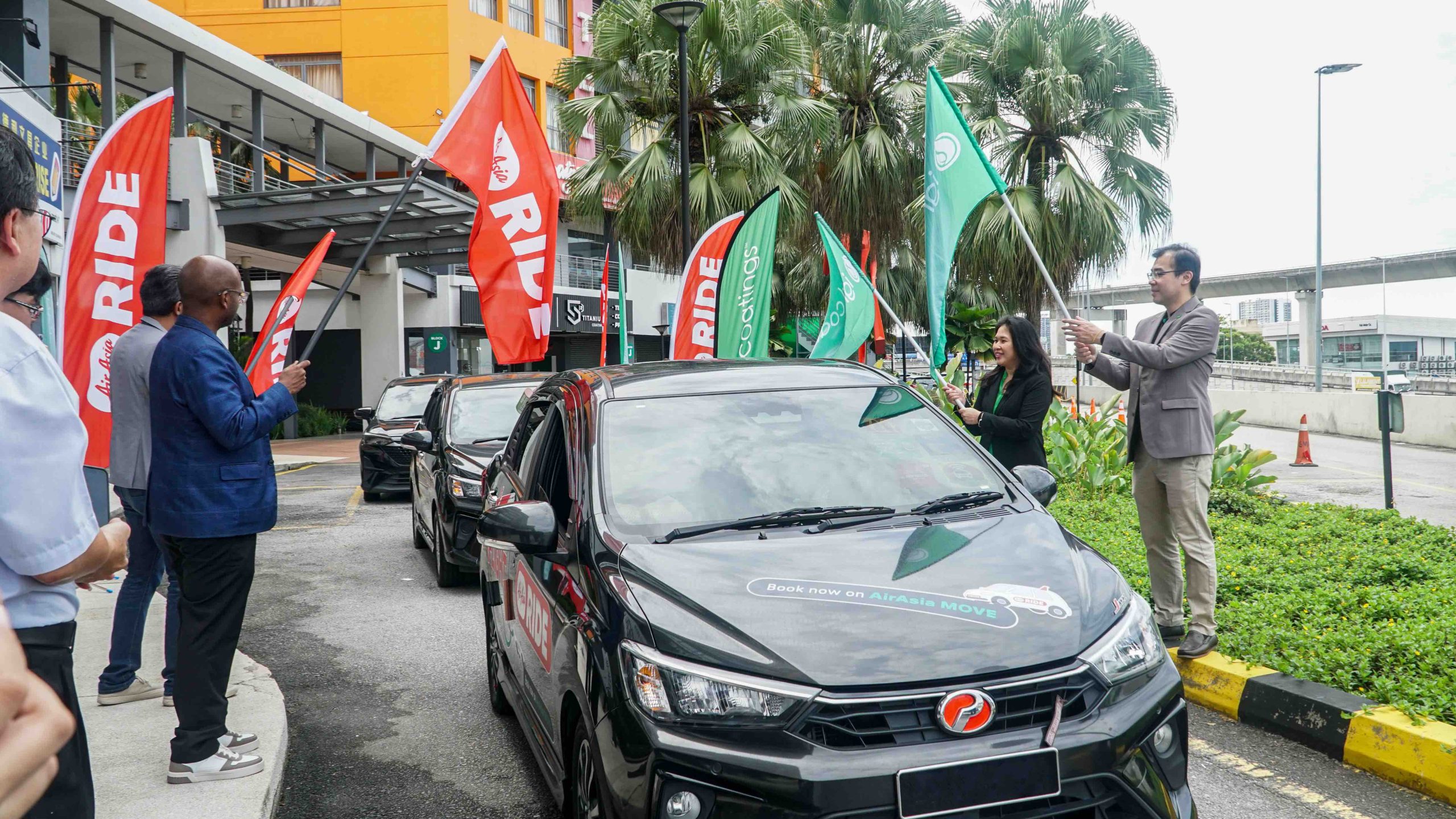 在蒲种 SetiaWalk 举行的启动车队仪式上,IGL Coatings 创办人龚峻湝、共同创办人陈官麟、AirAsia Ride 营运主管 Suruban Jayacumaran 以及 AirAsia MOVE 首席财务长 Ramanathan A. M. N. Thiagarajan 齐齐为象征计划启航的车队挥旗起跑。